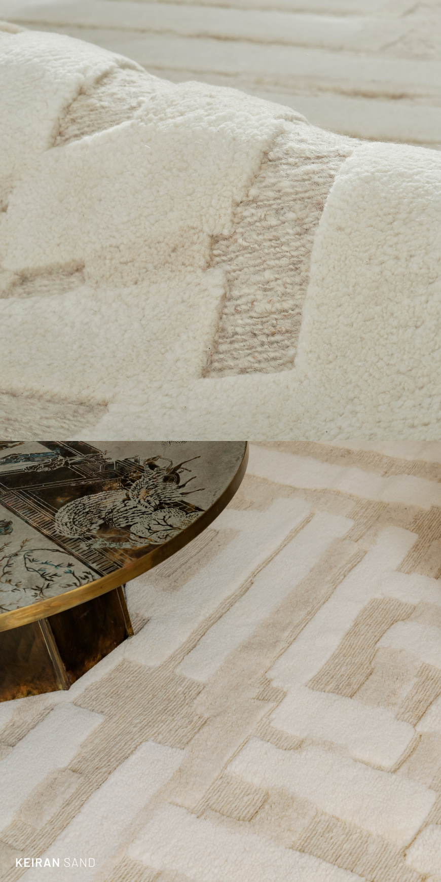 With contemporary geometry and a richly textured cut pile, Keiran brings bold structure and tactile depth to any space. Hand-knotted in 100% wool, each rug features natural variations that make every piece distinctly one of a kind.
