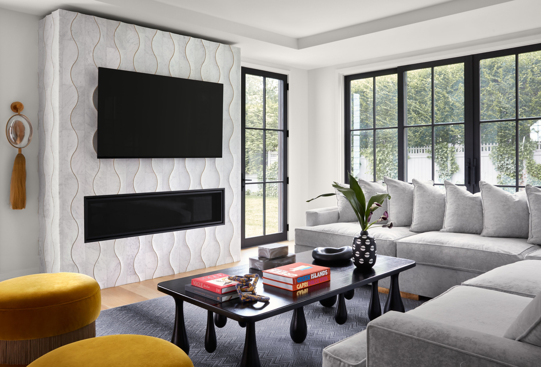 A: "We typically select in conjunction with wall treatments and textiles. We either go for a solid or a really unique pattern to make a statement."